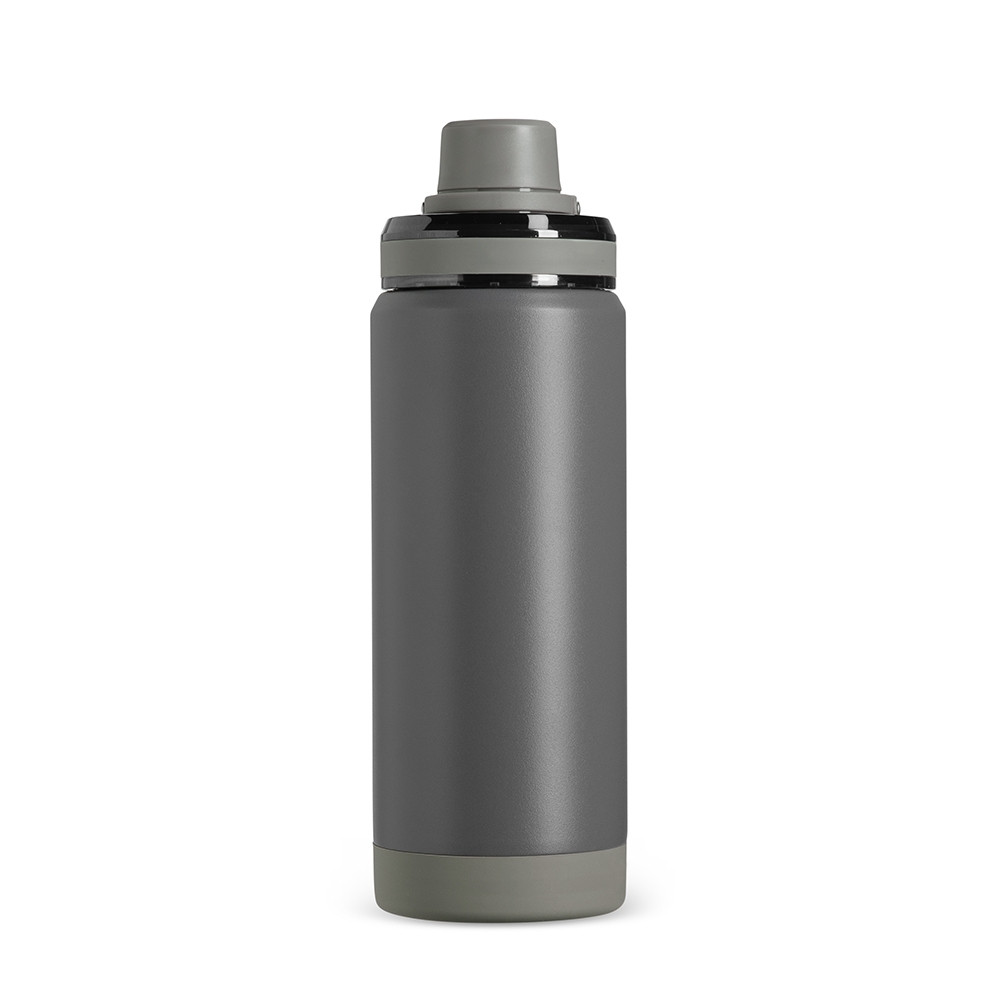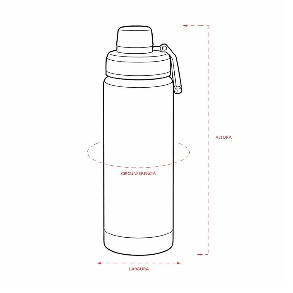 Garrafa térmica em inox 304 com capacidade máxima de até 600ml. Conta com estrutura de parede dupla e vedação a vácuo para manter a temperatura de líquidos conservada por mais tempo. Possui tampa rosqueável em plástico com protetor para o bocal e alça para transporte. Acompanha protetor antiderrapante para a base.